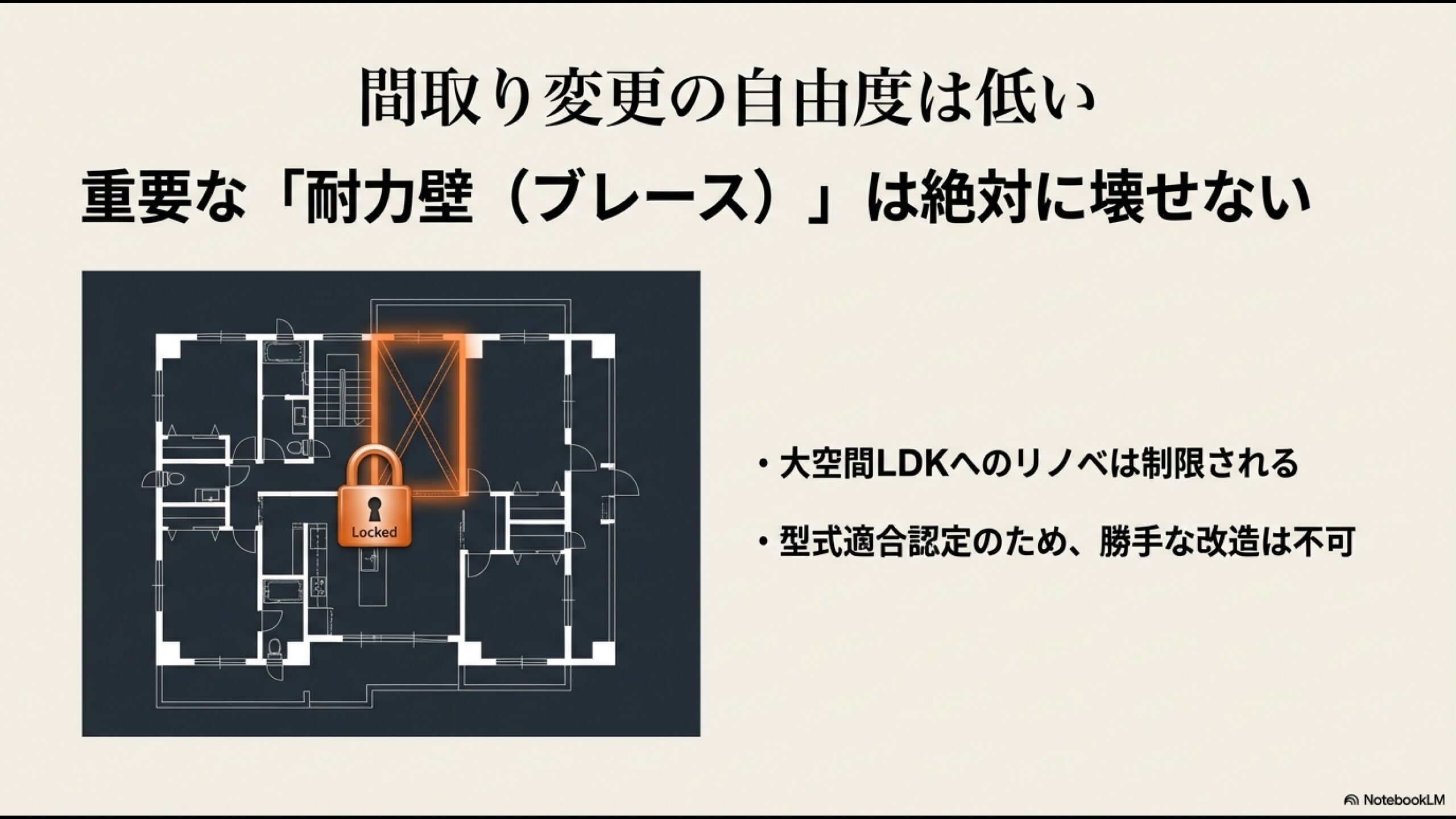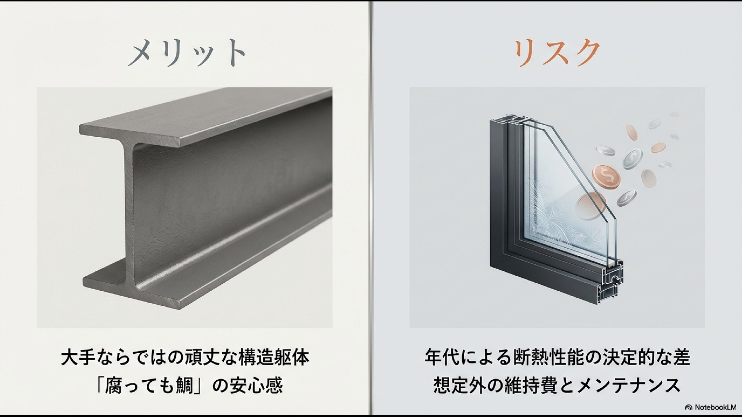 一方で、断熱性能には不安があり、保証継承にはコストがかかり、リフォームの自由度も低い。