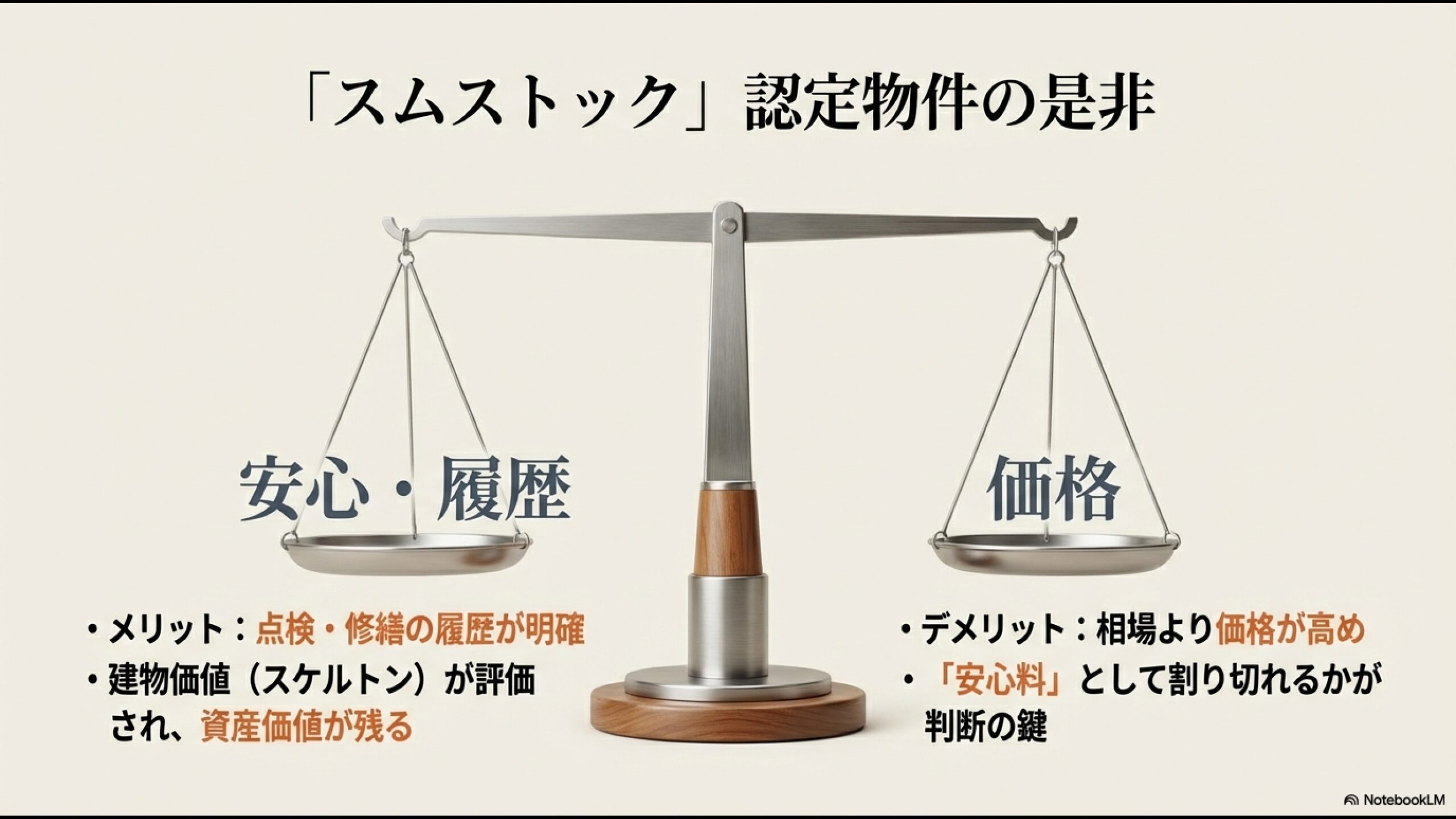 スムストック認定物件の最大のメリットは、建物の履歴(点検や修繕の記録)がガラス張りで明確であることです。