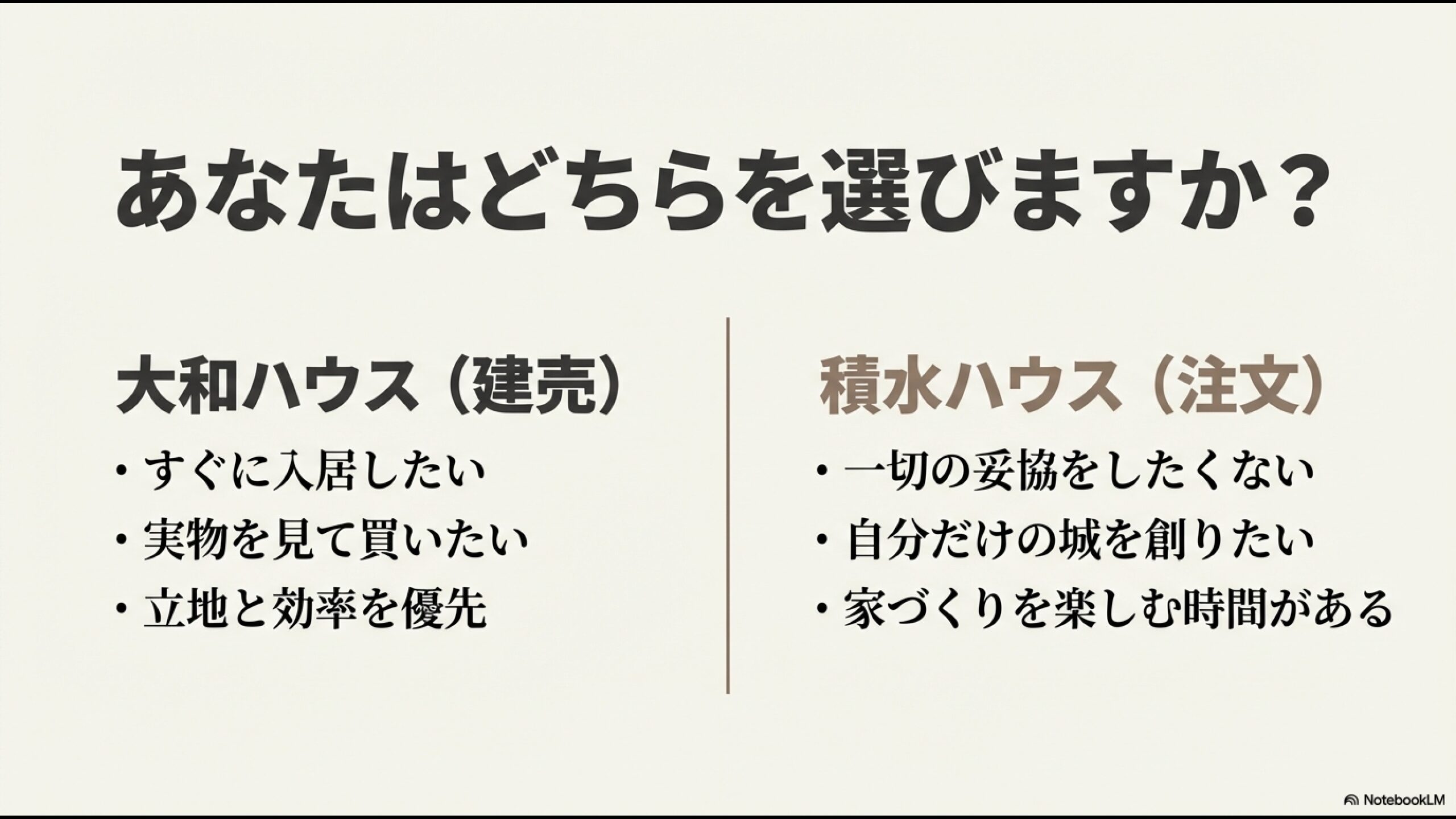 最後に、大和ハウスの建売か、それとも積水ハウスのような注文住宅か、迷っているあなたへ。