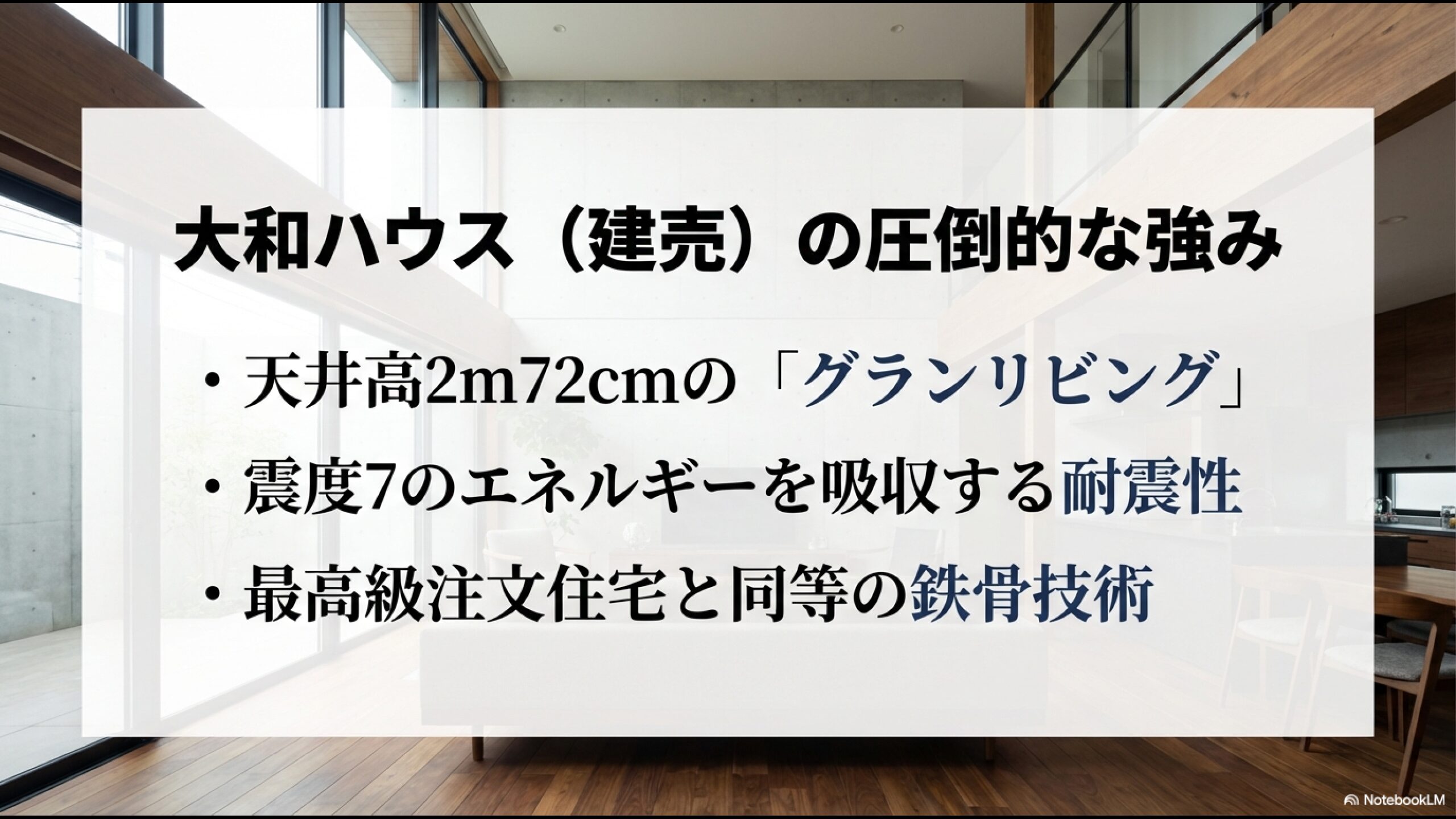 大和ハウスxevoΣの強み:天井高2m72cmのグランリビングと震度7に耐える鉄骨技術
