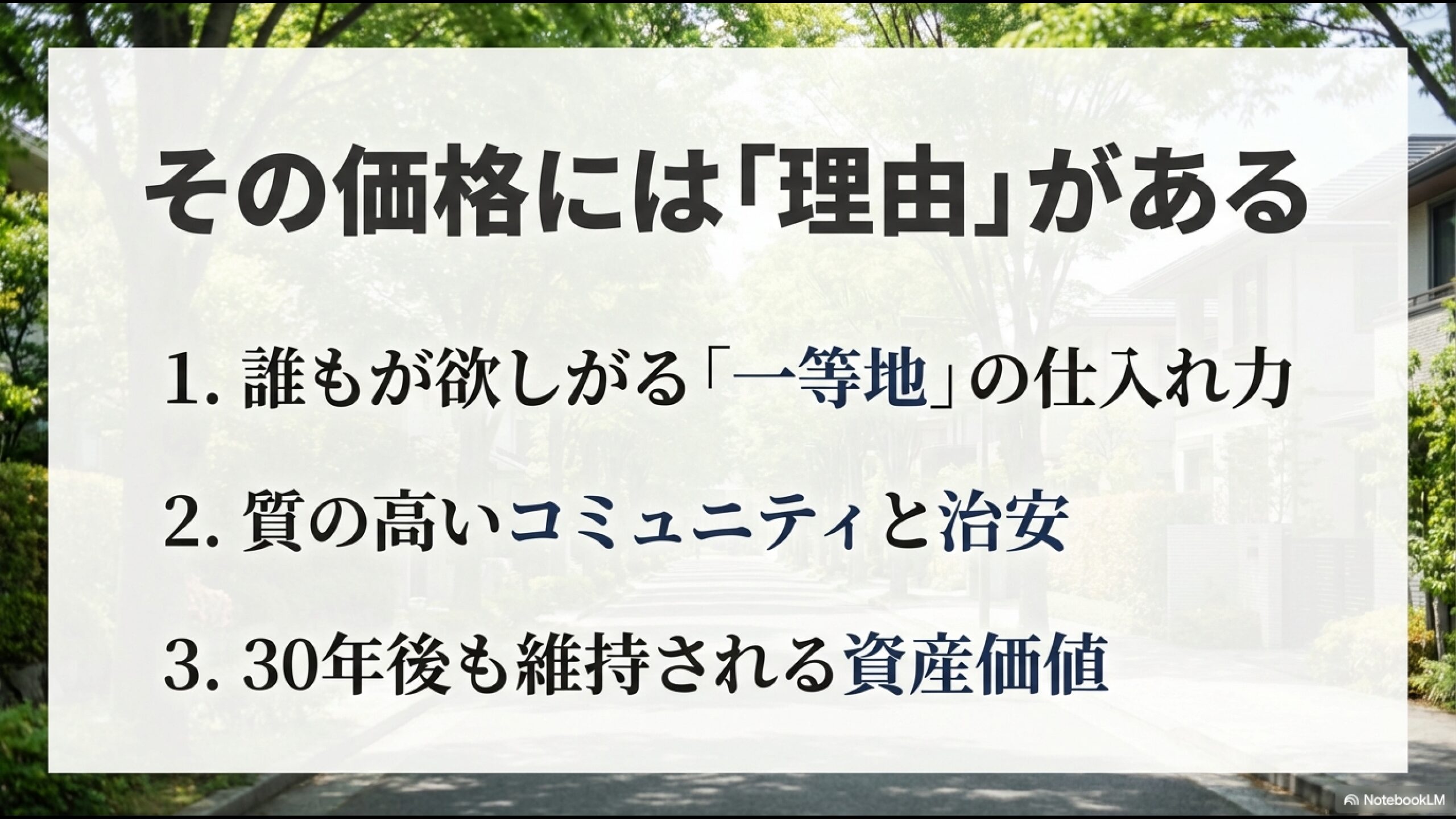 それは、「30年後の資産価値」と「コミュニティの質」です。