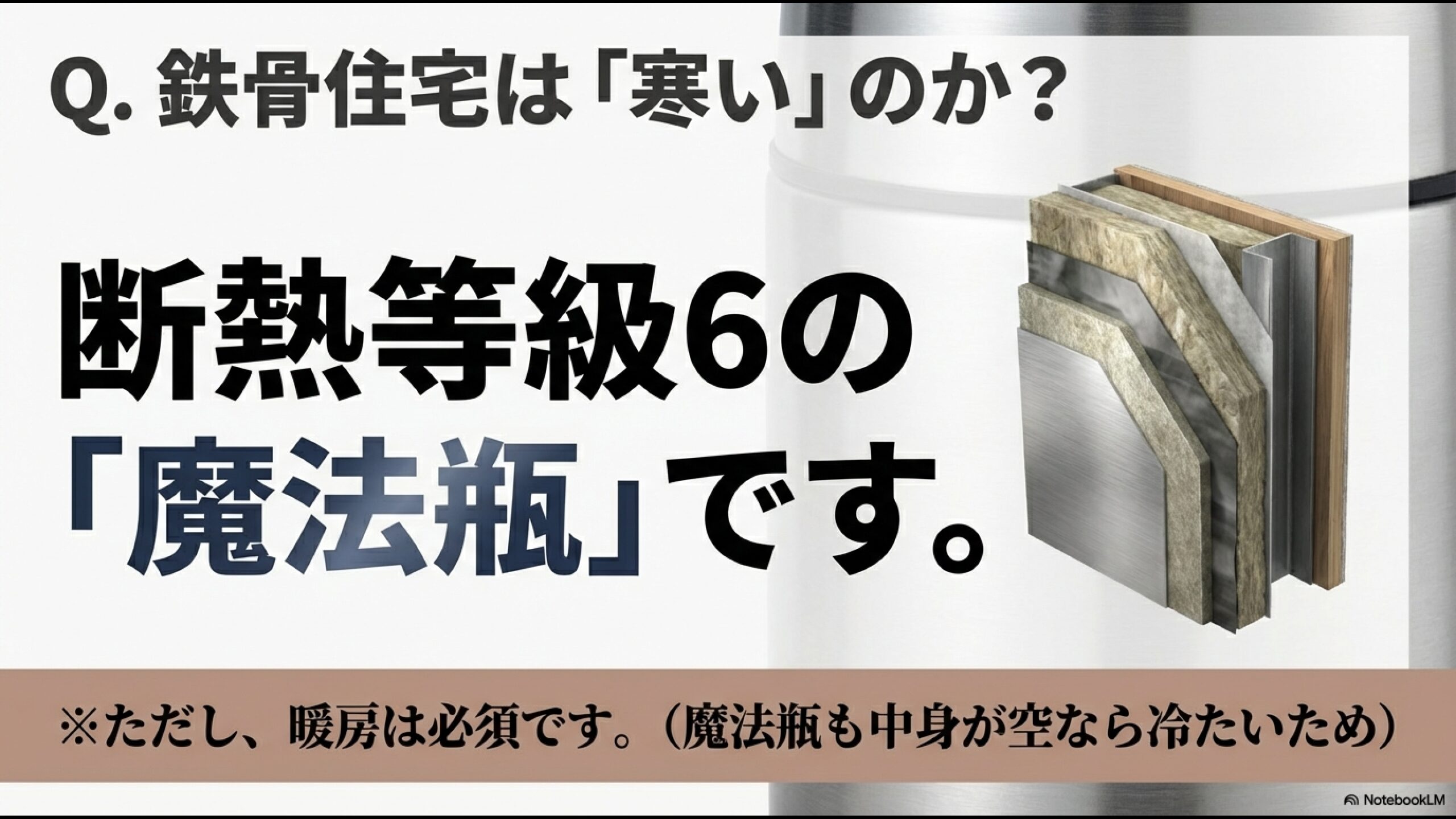 鉄骨住宅の寒さ対策:断熱等級6の魔法瓶構造と暖房の必要性