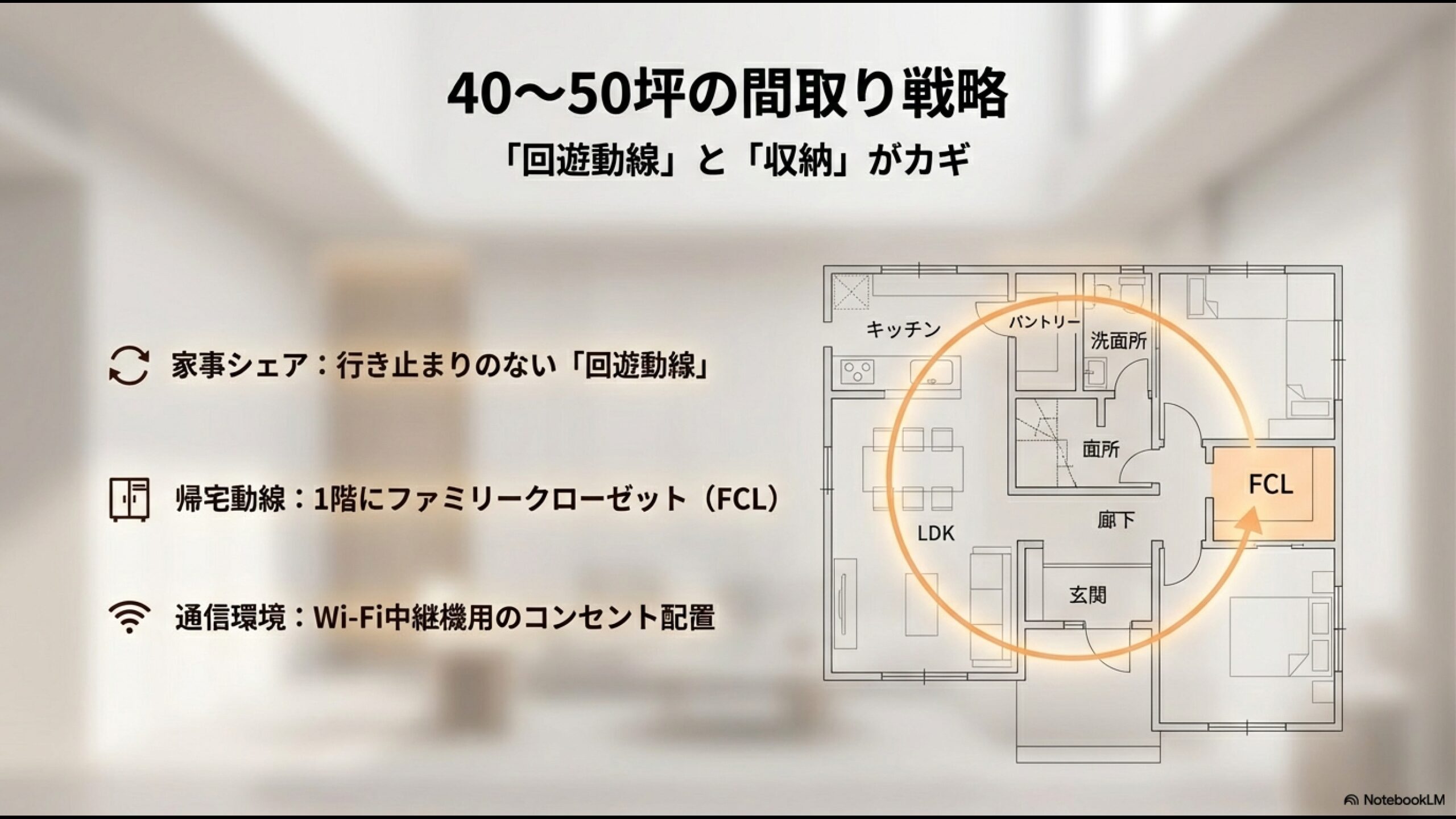 私が推奨する「廊下レス(ホールレス)設計」の具体的なポイントは以下の通りです。