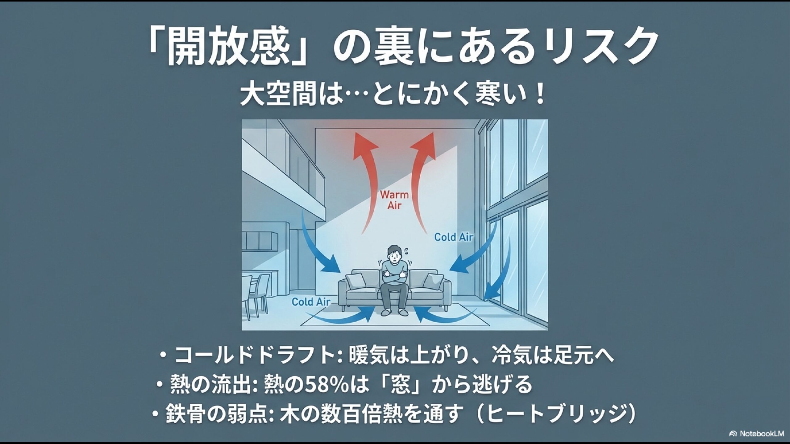 - 大和ハウスの代名詞「大空間」に潜む、冬場の底冷えリスクと光熱費への影響