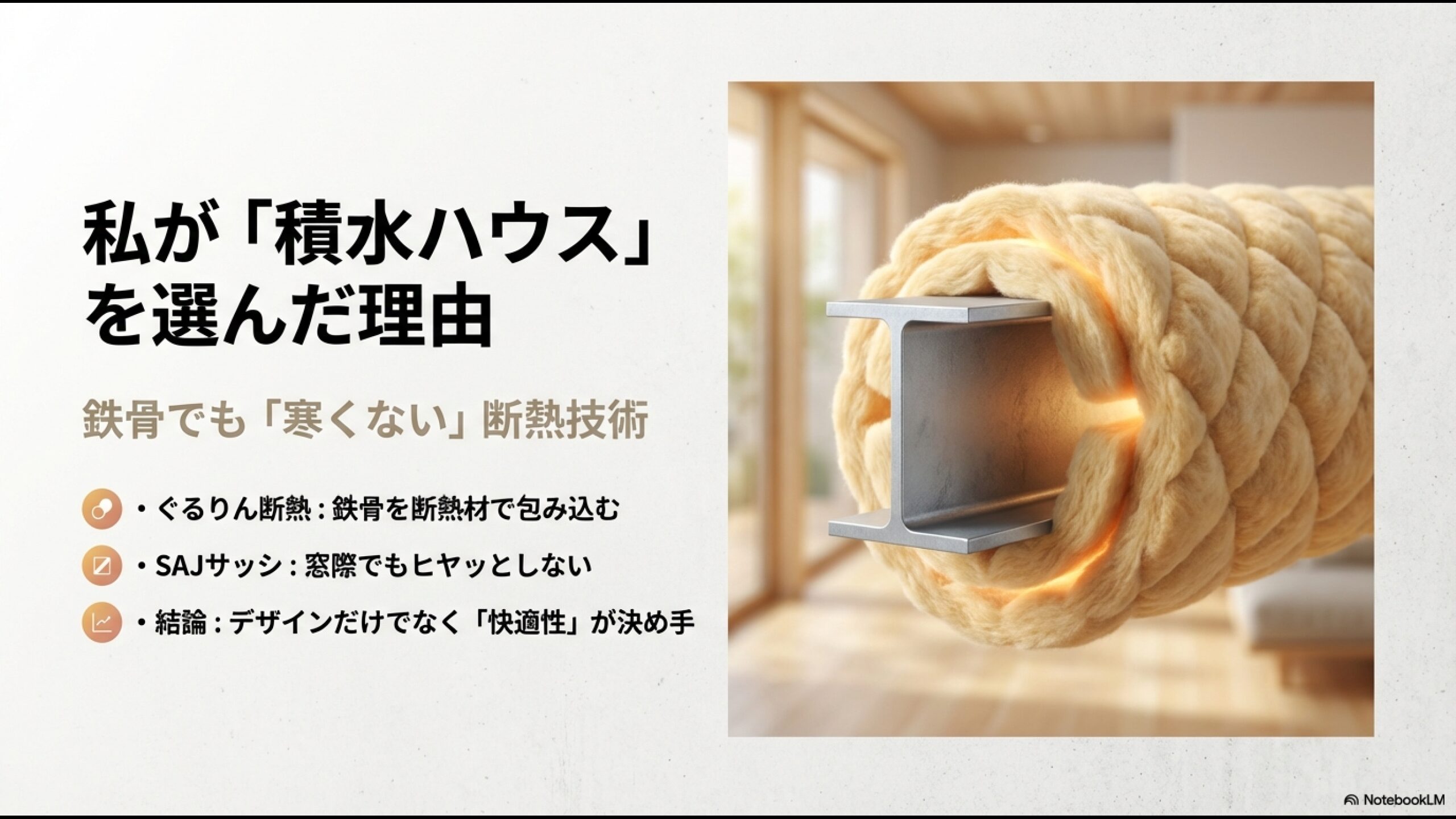 私が積水ハウスの工場見学や体験宿泊で最も驚いたのが、鉄骨住宅なのに「寒くない」という事実でした。
