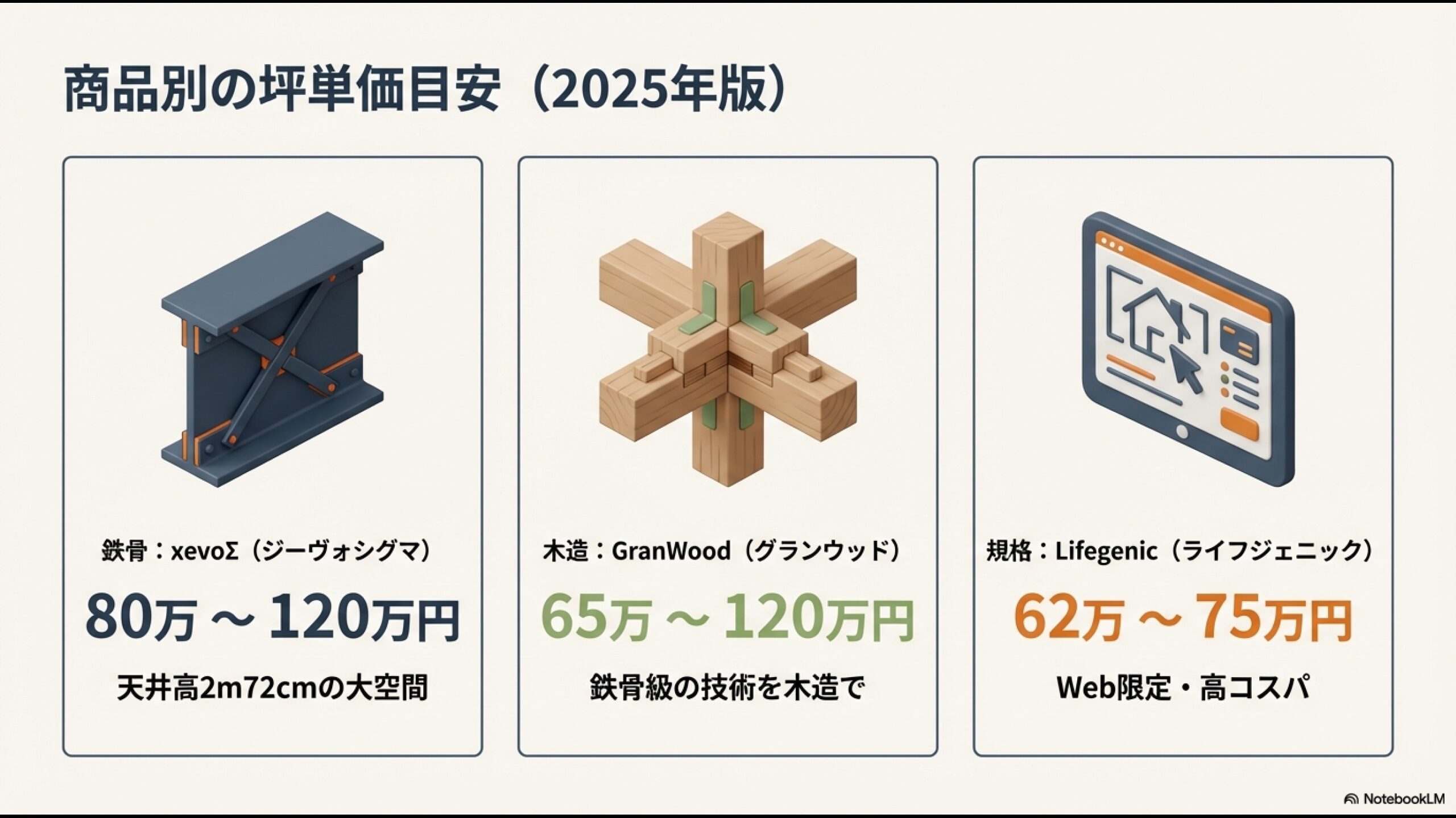 2026年版大和ハウス商品別坪単価目安一覧(xevoΣ・GranWood・Lifegenic)