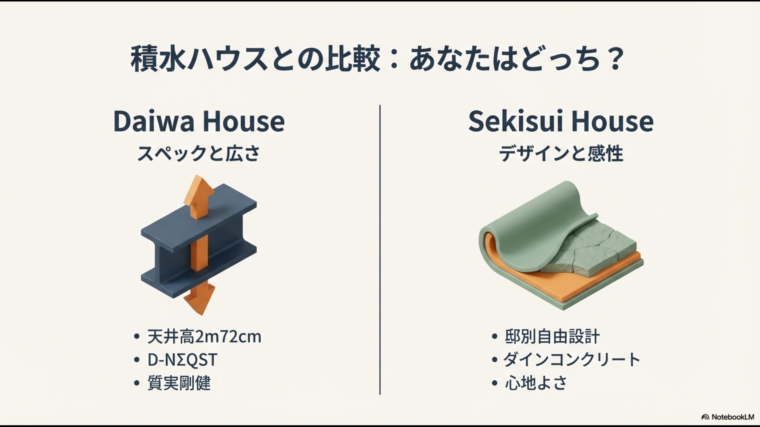 もしあなたが、「数値的な性能だけでなく、自分だけのこだわりの空間をデザインしてほしい」「感性に響く家づくりがしたい」と願うなら、積水ハウスの提案力も一度体験してみる価値はあると思います。