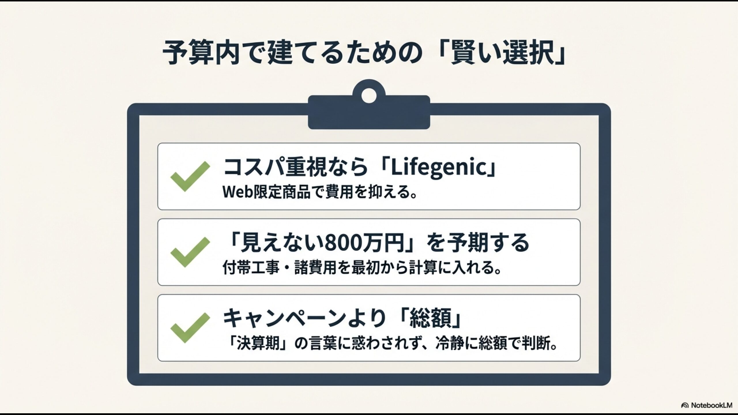 予算内で建てるための賢い選択:Lifegenicの活用や見えない費用の予期、総額判断の重要性