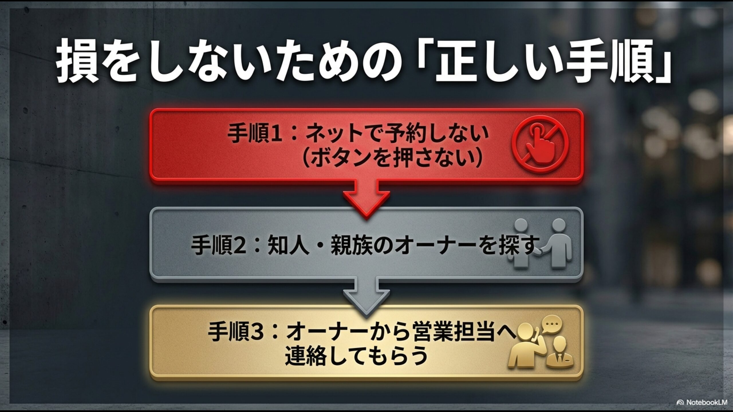 (数千円のQUOカードの誘惑に勝ち、数百万円相当の紹介割引の権利を守る) - 身近なオーナー、または信頼できる紹介ルートを探す