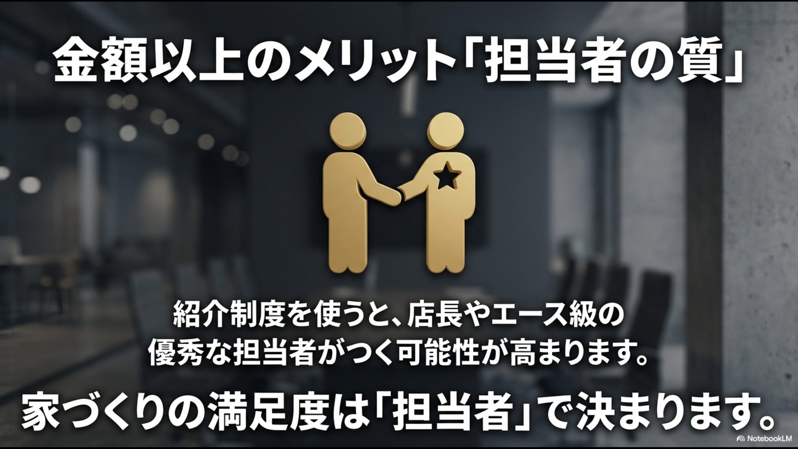 (紹介制度の最大のメリットは、割引だけでなく、エース級の担当者がつく確率が上がることです。家づくりの満足度は担当者で9割決まります) - その上で、大和ハウスと積水ハウスなどの競合他社をしっかり比較する