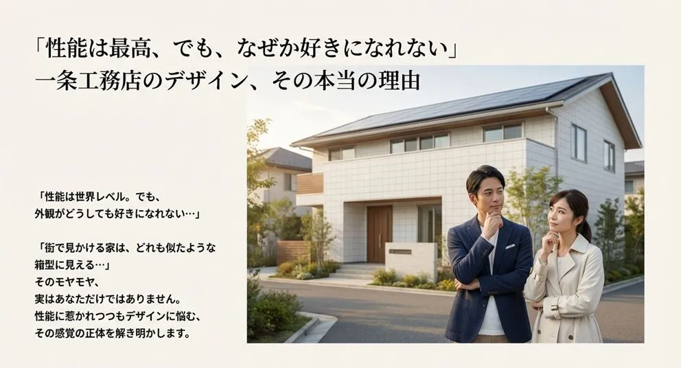もしあなたが今、一条工務店の圧倒的な性能数値に惹かれつつも、その外観デザインに対してこのようなモヤモヤとした違和感を抱いているとしたら、その感覚は決して間違っていません。