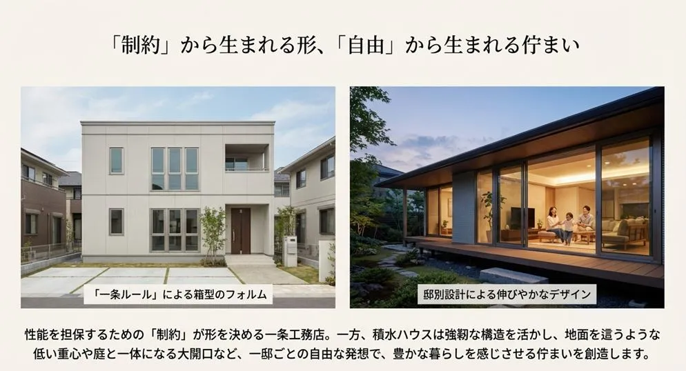 一条工務店が「厳格な規格の中で、性能の最大公約数的な正解を出す」スタイルだとすれば、積水ハウスなどの注文住宅メーカーは「白紙の状態から、その家族のためだけの正解を一から描く」スタイルです。
