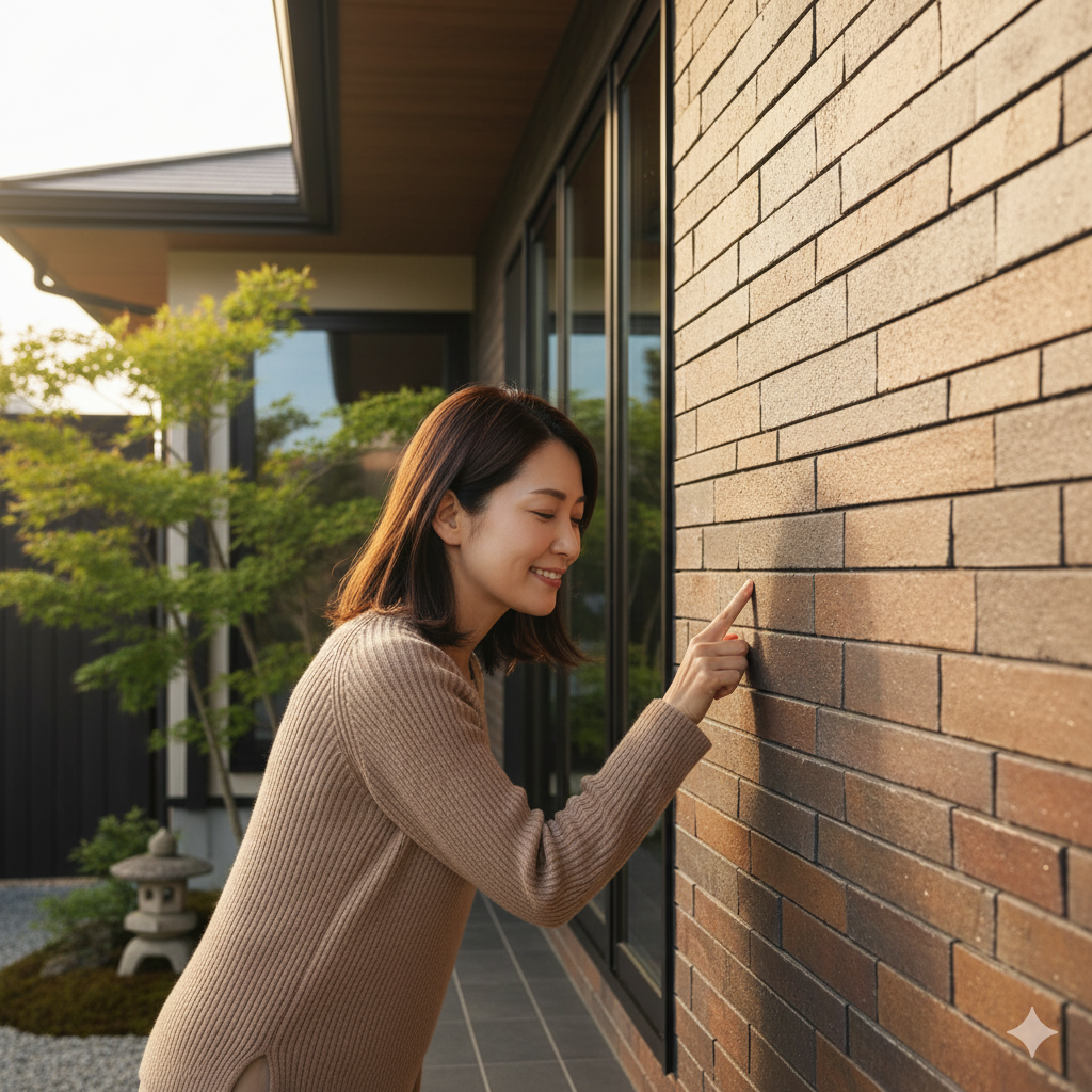 この深い凹凸が、太陽の光が当たった時にドラマチックな陰影を生み出し、家全体に揺るぎない重厚感と高級感を与えます。