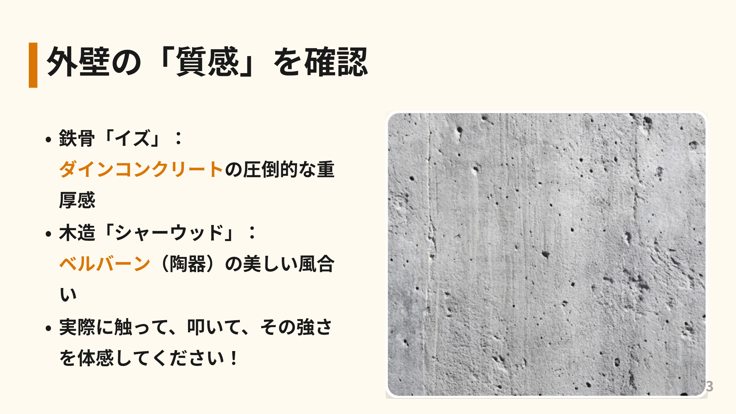 ぜひモデルハウスでは、遠慮せずに壁に触れ、その硬さと質感、そして安心感を体感してください。