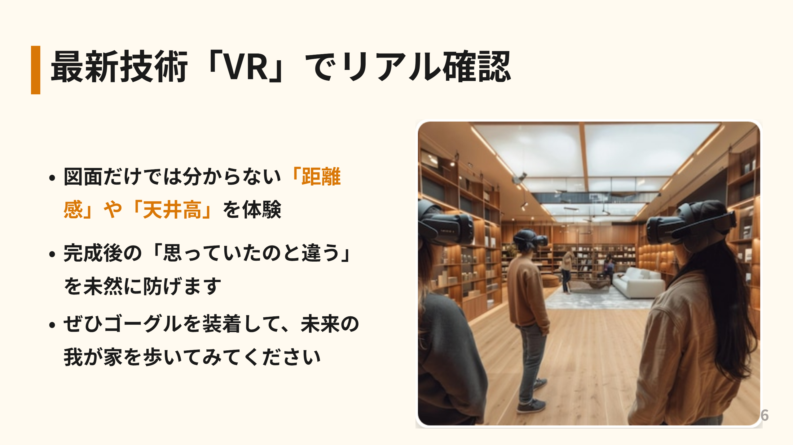 専用のゴーグルを装着すると、目の前には未来の我が家が広がります。