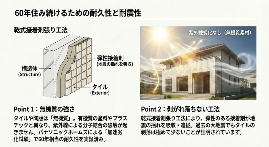 パナソニックホームズのキラテックタイルも、資産価値を守る上では最強の武器となります。