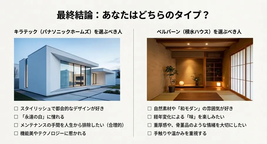 Q4. 積水ハウスのベルバーンとパナソニックホームズのキラテック、結局どっちがいいですか?