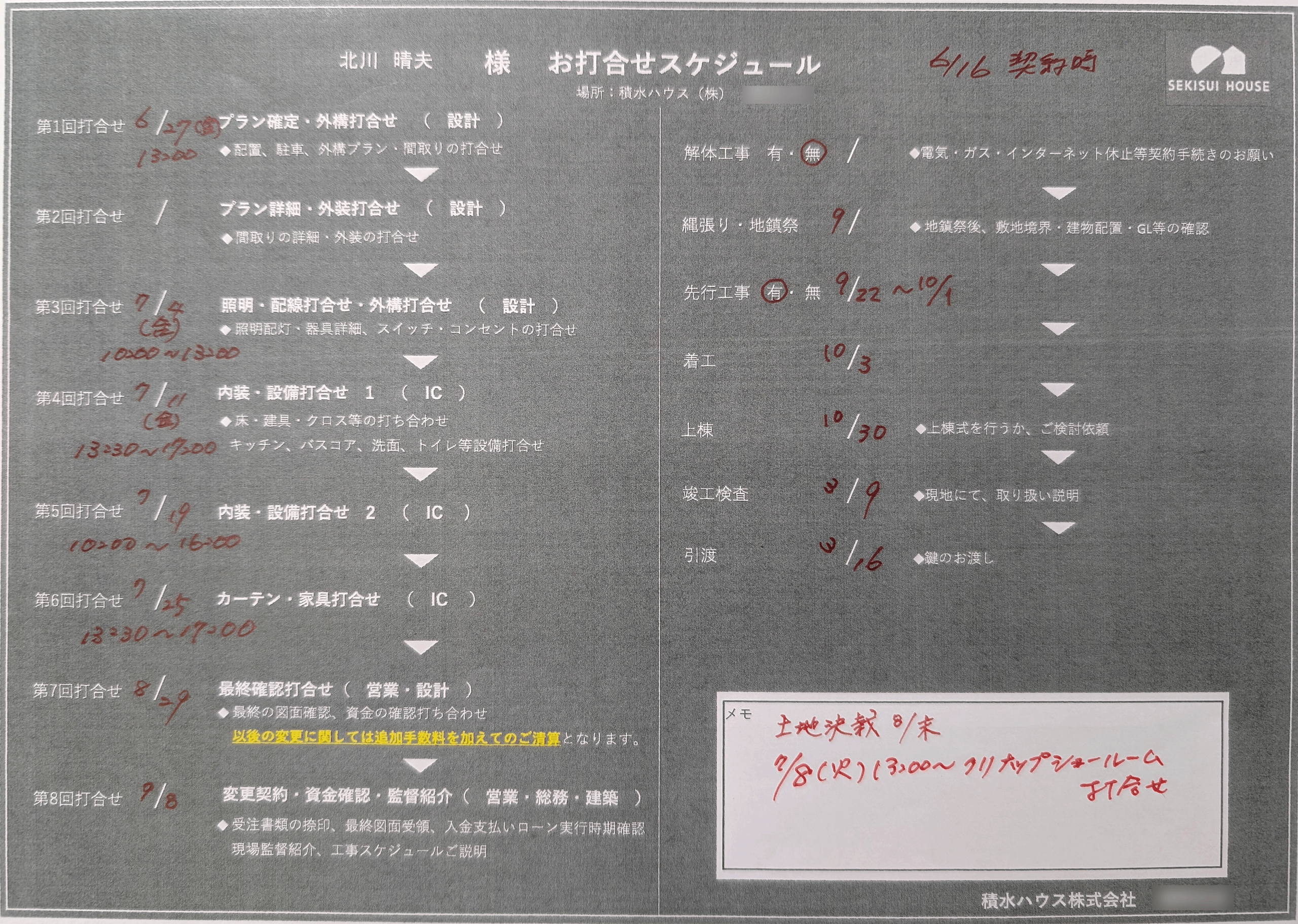 そして、いよいよ積水ハウスさんとの「本契約」に進んでいく、という流れになります。