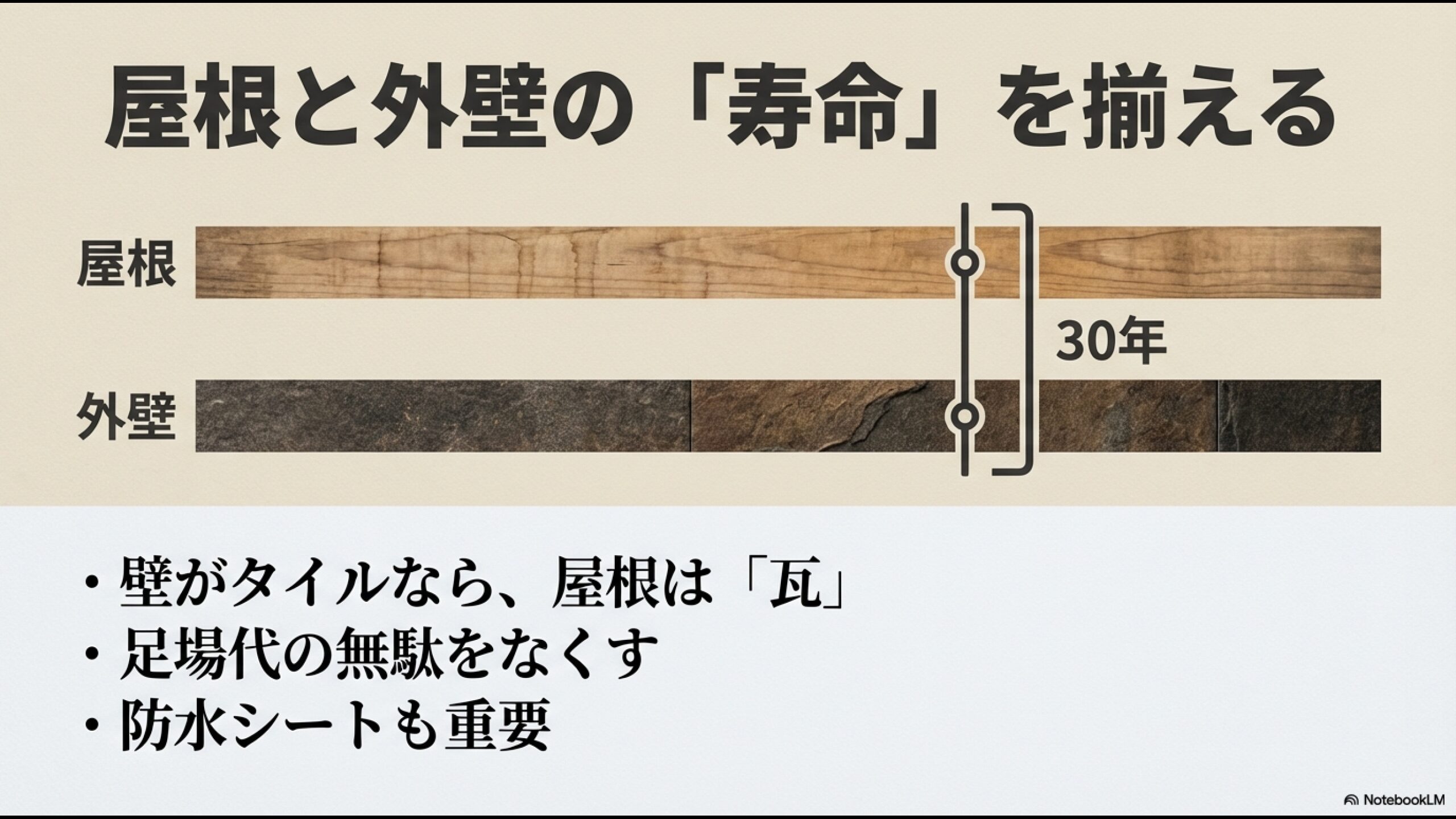 だからこそ、外壁を塗り壁にするなら屋根も30年耐久のものに合わせる、あるいは屋根を60年耐久(瓦など)にするなら外壁も高耐久(タイル)にするなど、「メンテナンスのタイミングを同期させる」ことが、トータルコスト削減の鉄則なんです。