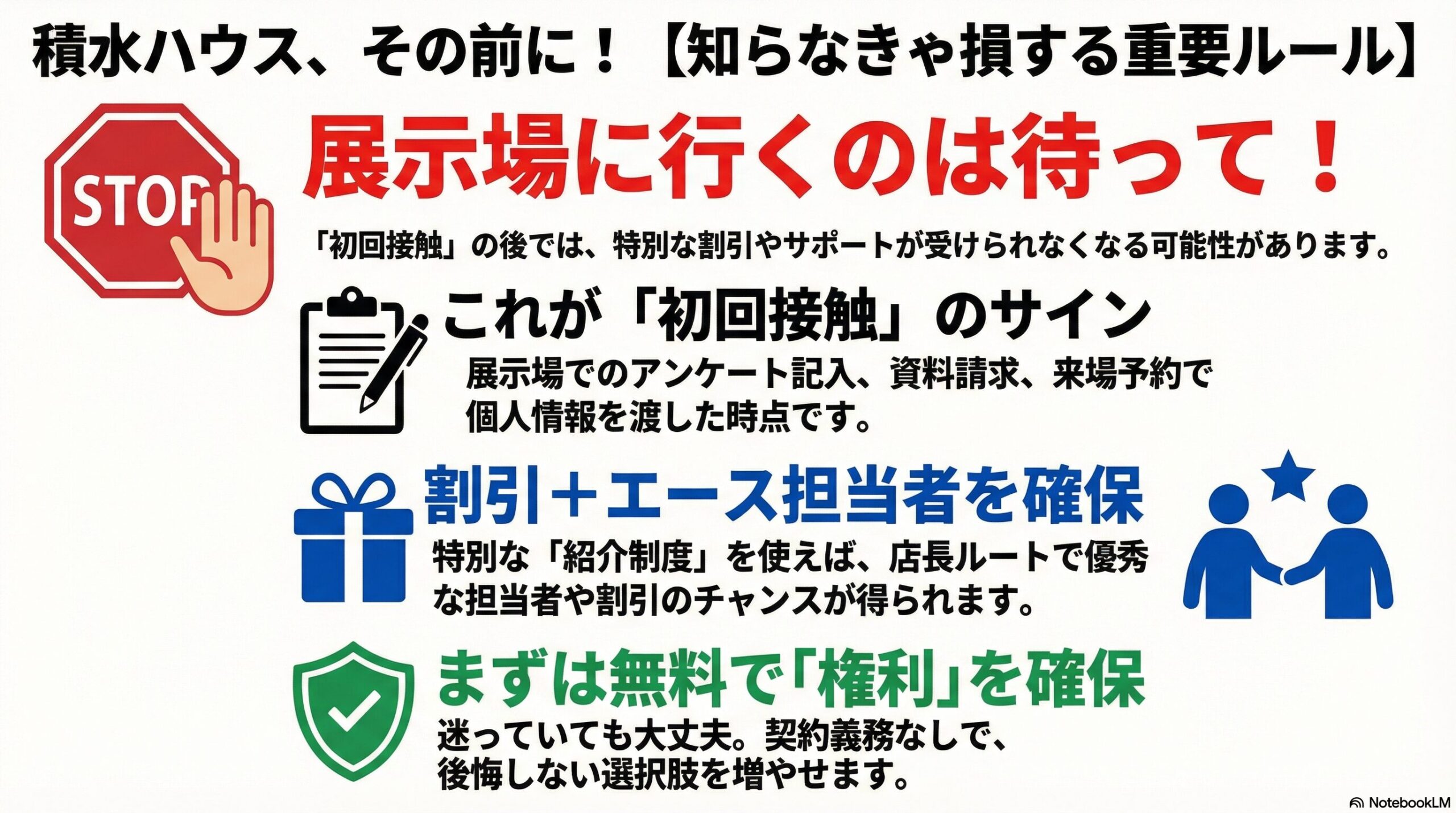 積水ハウスの紹介によるサポート(割引の橋渡し・店長ルートのプッシュ)は、原則として「初回接触前」であることが重要になります。