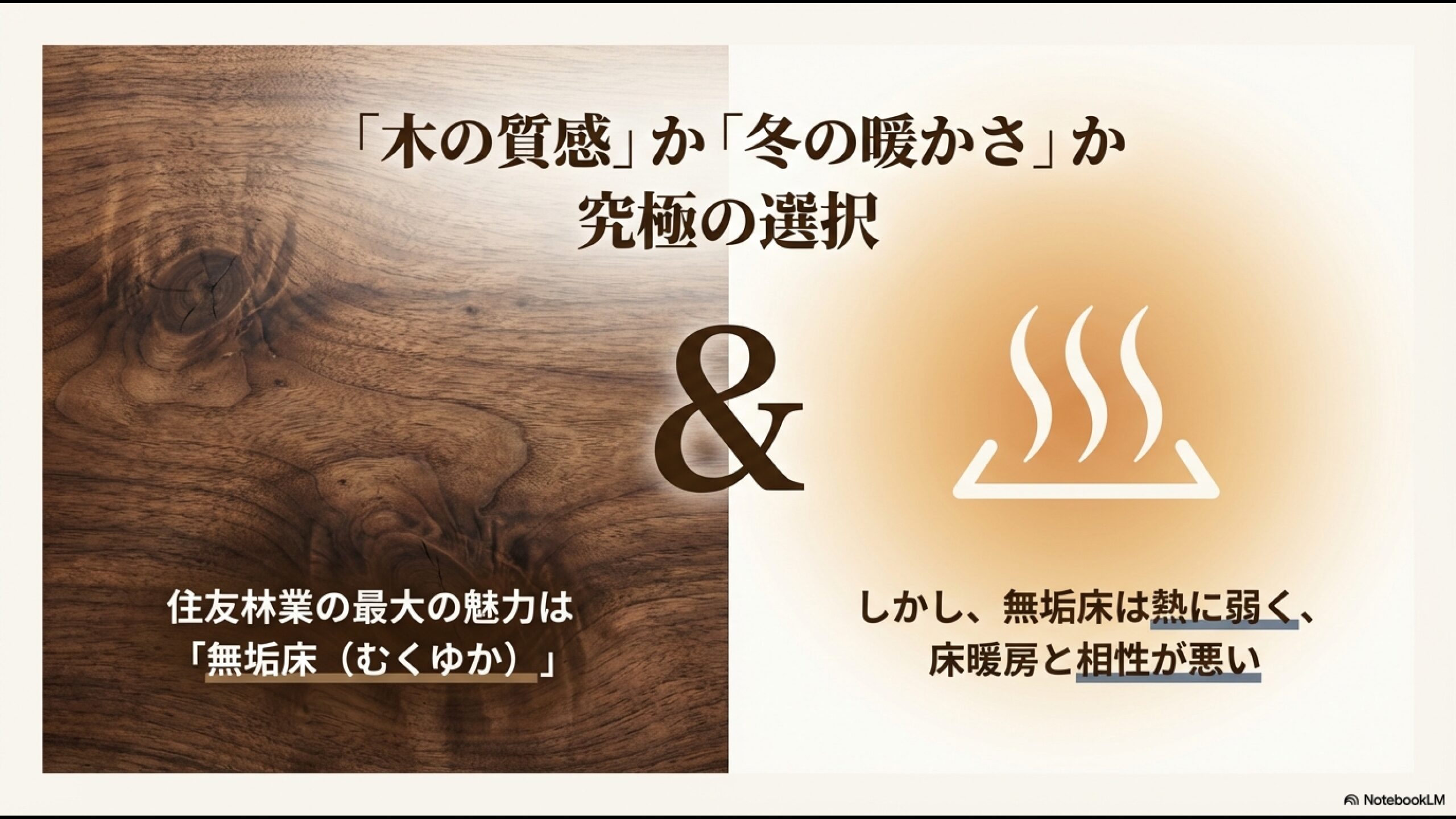 「木の質感」を取るか「冬の暖かさ」を取るか。住友林業の家づくりにおける究極の選択肢