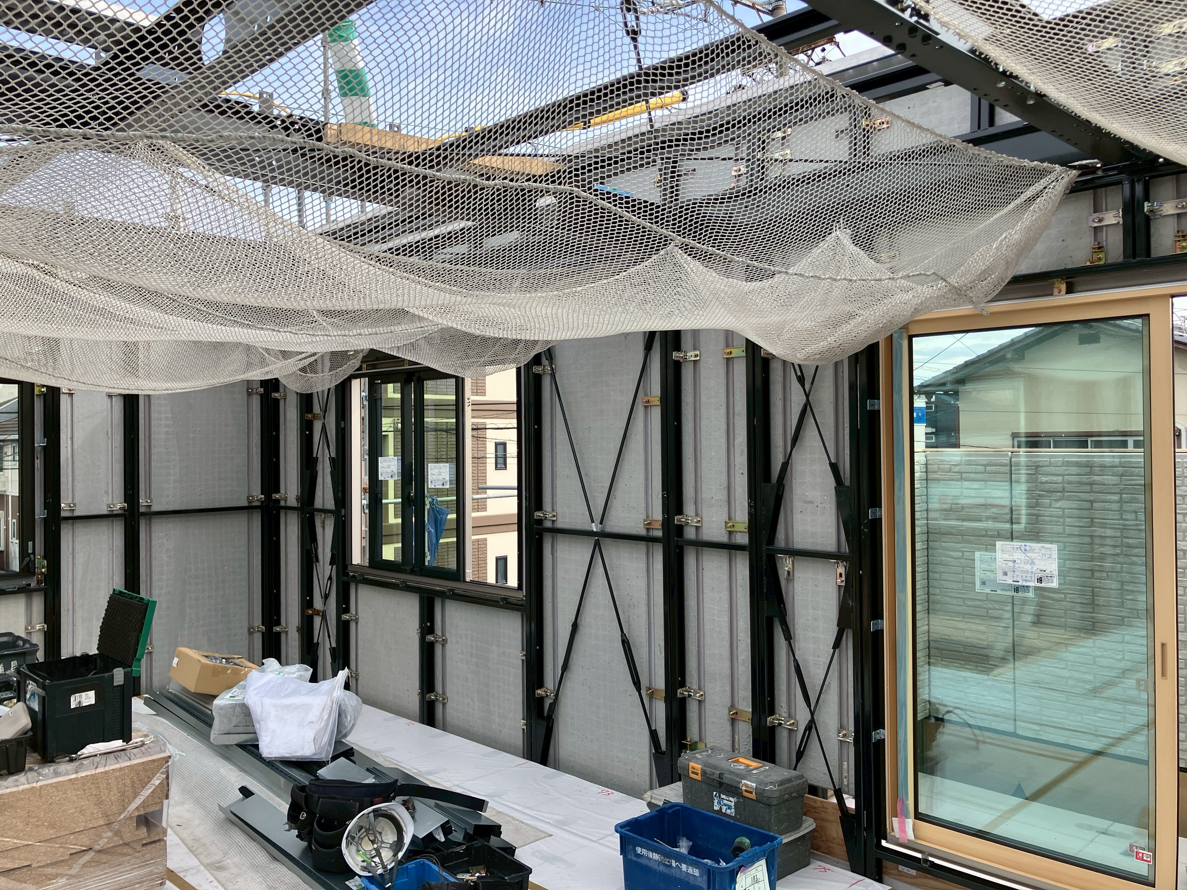 あの時はまだ1階部分の壁が中心でしたが、あれからさらに工事は進み、ついに2階部分の外壁も取り付けられたようです!