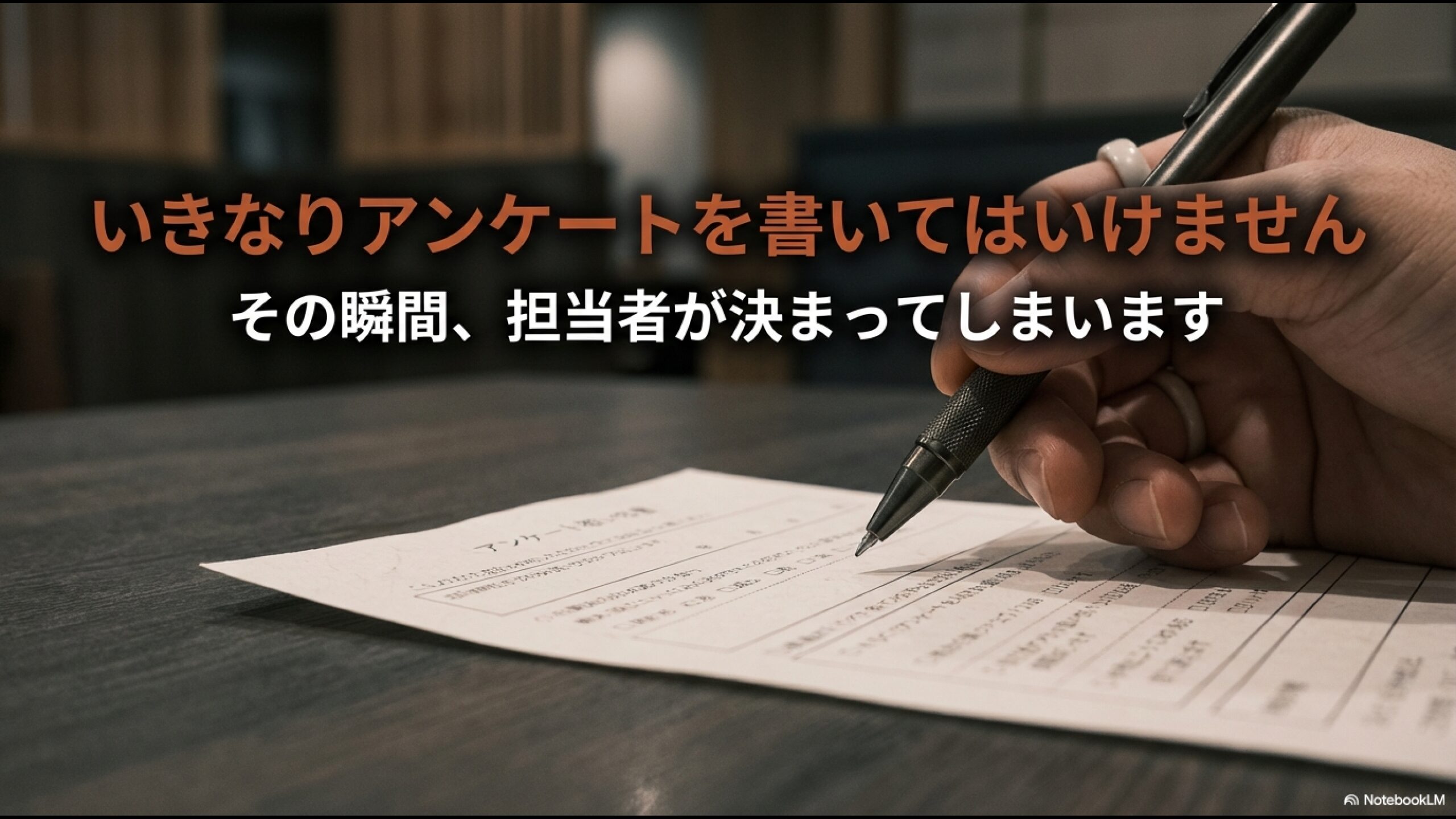 先ほども述べたように, このアンケート記入が「担当者の決定」を意味するため, 安易に記入するのは危険です。